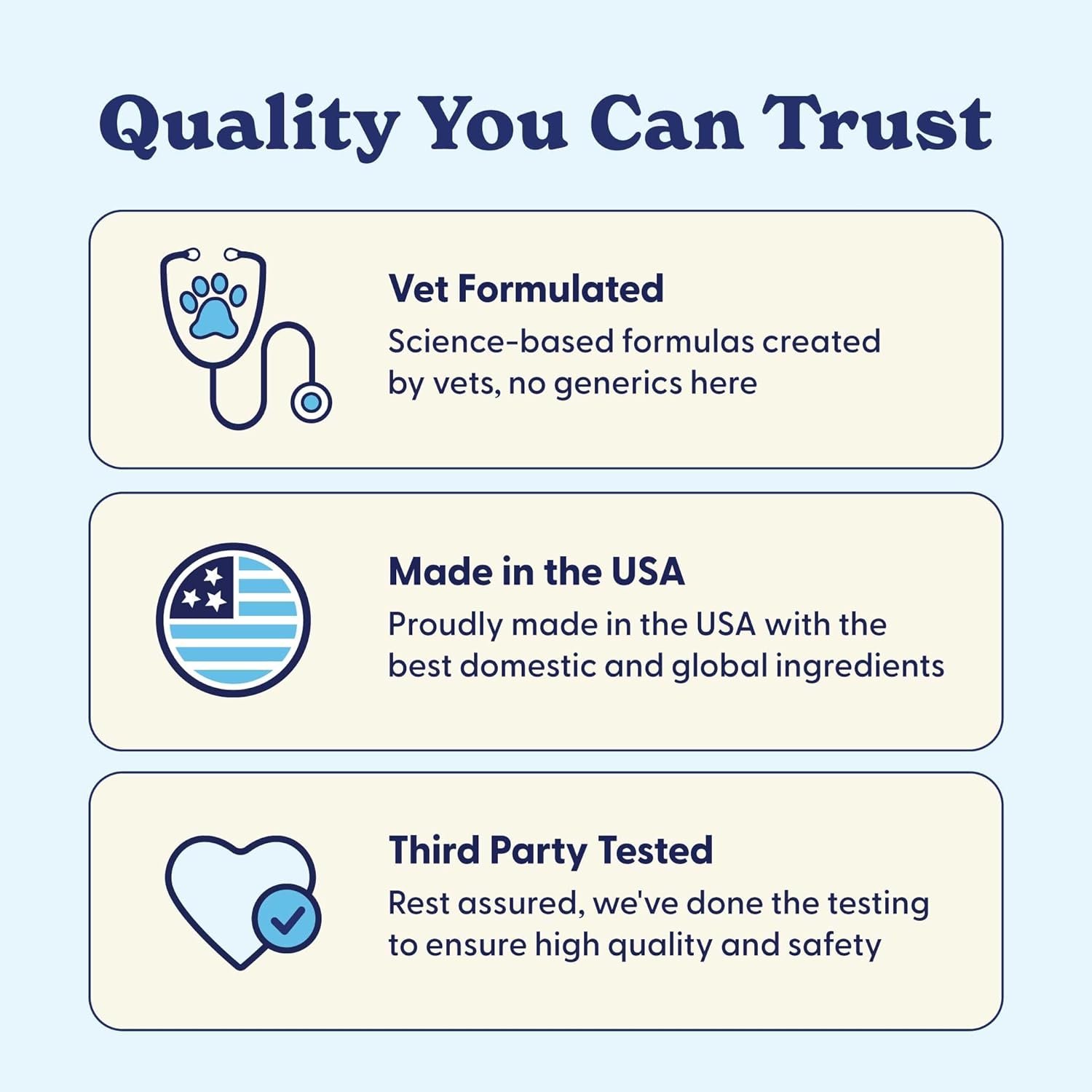 We provide you and your pets with the highest quality ingredients, because we wouldn’t settle for anything less for our own.