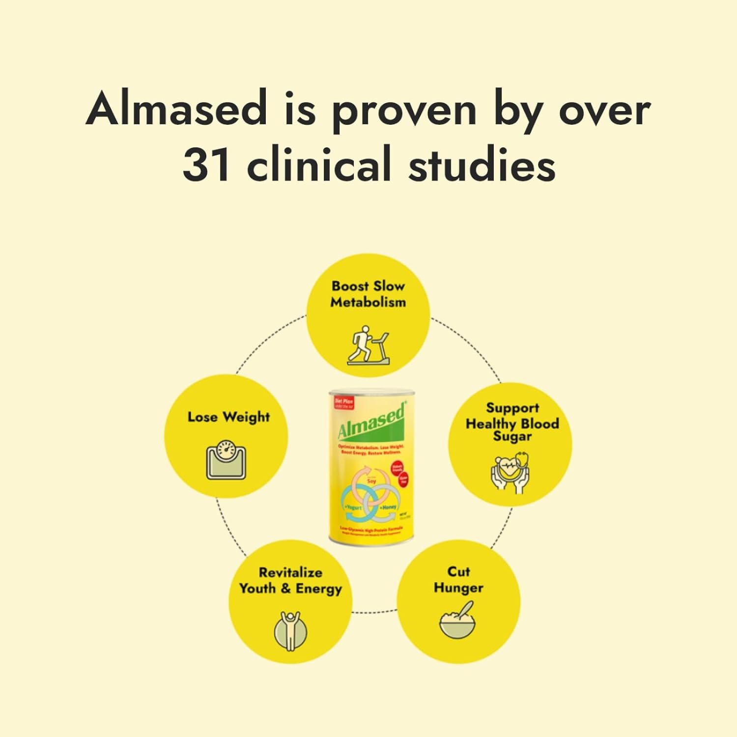 Developed over 30 years ago by a German Holistic Therapist, he discovered that using Almased results in successful weight health for the body. Use Almased with the Figure Plan. It guides you through the 4 Phases of how to use Almased as a meal replacement shake for optimal weight health results and improves overall health and wellbeing when used along with an exercise program. Almased Containing 27 grams of multi-protein, Almased helps to retain muscle mass and keep you full for up to 4-6 hours. Some individuals who use Almased may also notice improved focus and energy levels during the entire day. 27 grams of high-quality protein with 15 grams of carbohydrates Only 180 calories All-natural, Non-GMO No stimulants, caffeine, cholesterol, or added sugars