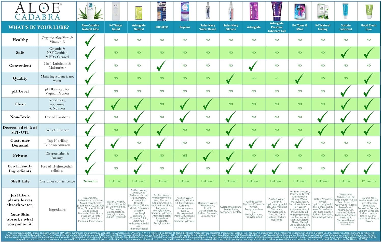 Aloe Cadabra’s Natural Aloe Lubricant is a premium water-based formula made to mimic your body’s natural lubrication while moisturizing and invigorating a natural and lasting experience.
