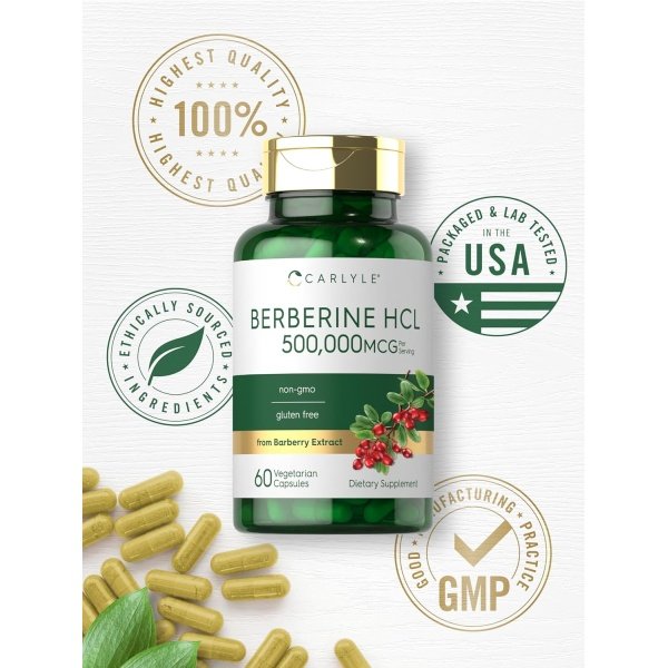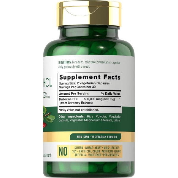 VEGETARIAN FORMULA: Each serving provides 500,000 mcg of Berberine HCl in vegetarian capsules