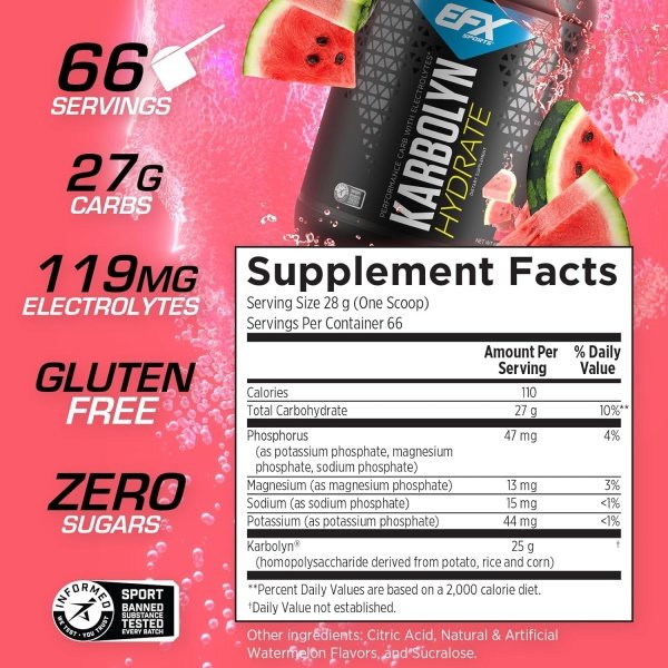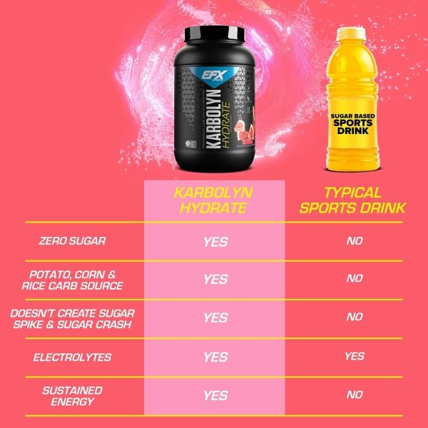 FAST-ACTING FUEL + ELECTROLYTES: Karbolyn is a clinically studied (with peer-reviewed, published research) carbohydrate supplement powder sourced from potato, rice, and corn for a fast, safe, and effective way to quickly and easily load your muscles with lasting energy. Karbolyn Hydrate also contains electrolytes, which are critical for sports performance and recovery.