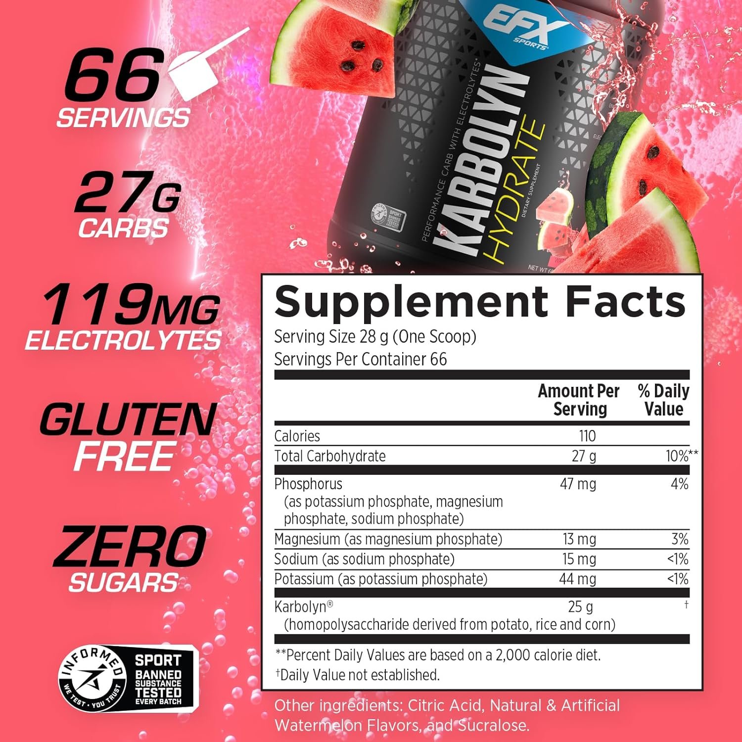 MANUFACTURED IN-HOUSE: EFX Sports is part of a very small, elite group of brands who actually make their own products. That’s why we guarantee Karbolyn Hydrate always meets label claims and is 100% banned-substance free (certified by Informed Sport). With Karbolyn Hydrate, you’ll know you have a pure and potent carbohydrate product.