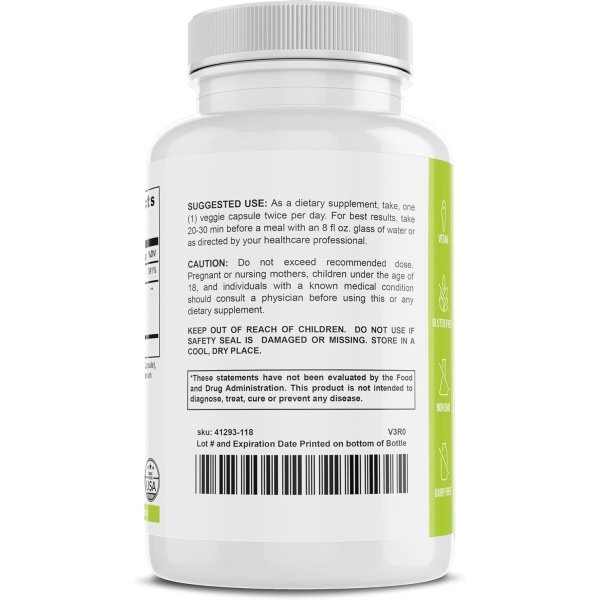 Vegan and Gluten-Free: Made with veggie capsules, suitable for vegans and those with gluten sensitivities.