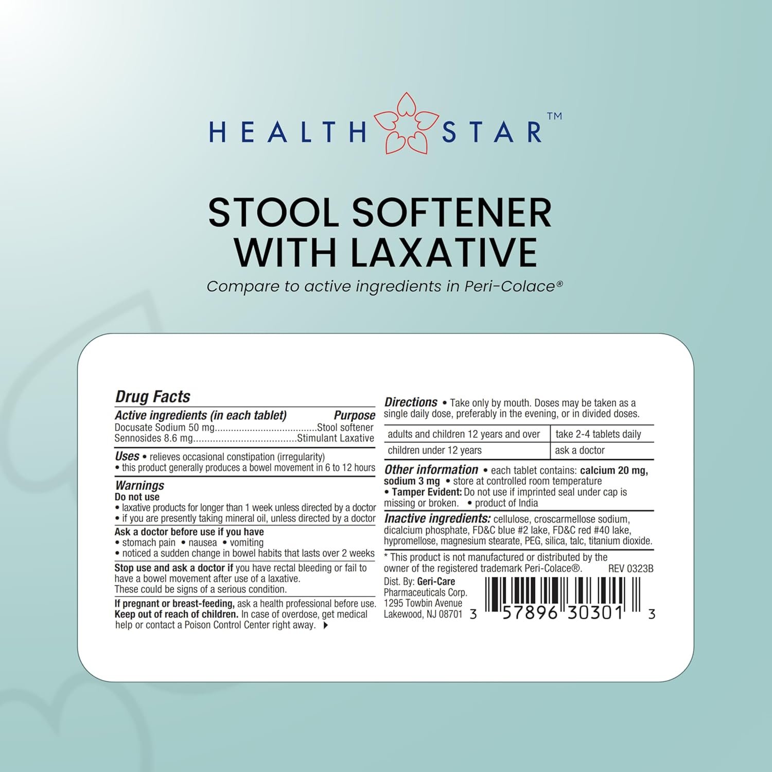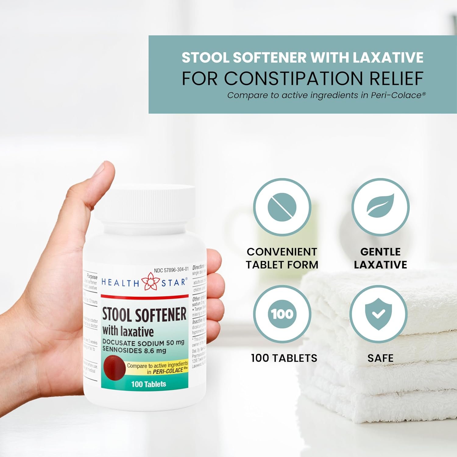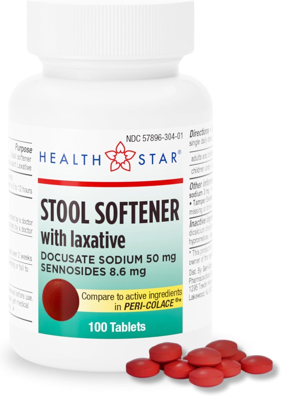 The Stool Softener Docusate Sodium 50mg and Sennosides 8.6mg, available in a convenient bottle of 100 tablets, is a trusted solution for addressing constipation and promoting regular bowel movements. This gentle yet effective formula is designed to soften dry and hard stools, making them easier to pass without straining or discomfort. With its active ingredient, docusate sodium and sennosides, this stool softener works by increasing the amount of water absorbed into the stool, enhancing its consistency and promoting smoother bowel movements. Whether you’re experiencing occasional constipation or seeking relief from discomfort due to medical conditions or dietary changes, this product offers reliable support for gastrointestinal health.