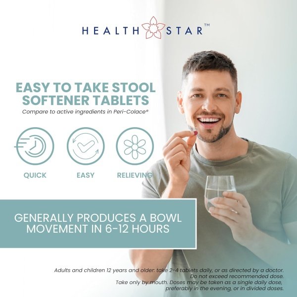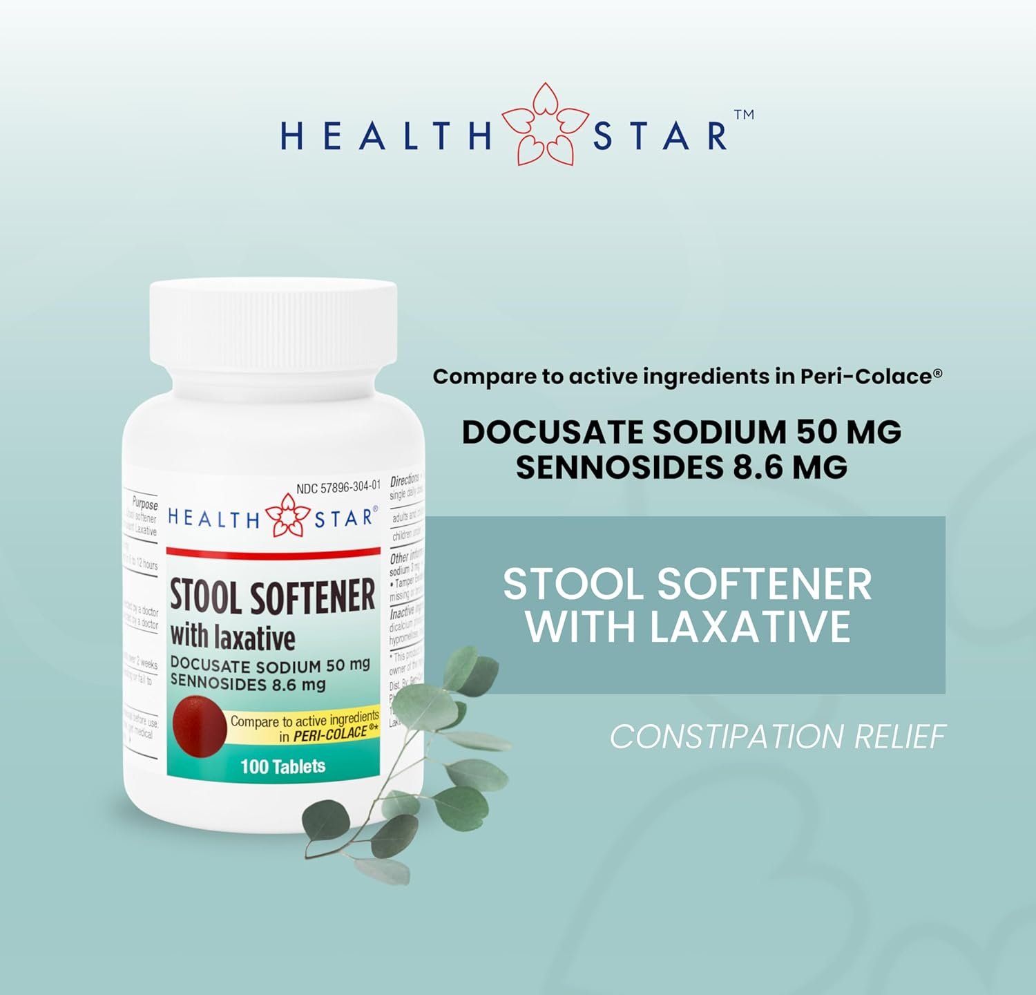 SENNA LAXATIVE TABLETS FOR GENTLE & REGULAR RELIEF: Delivering 50mg of Docusate Sodium and 8.6mg of Sennosides per tablet, this constipation-relief formula helps regulate your bowel movement, taking away all the pain and discomfort. Our tables are also fortified with 30mg of Calcium for even better results. *Compare to the active ingredient in Peri-Colace.