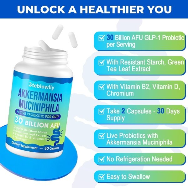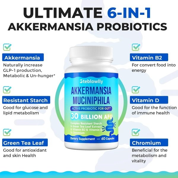 ☑️BEST CHOICE & EXPERTLY FORMULATED – Steblowlly GLP-1 Probiotic is Non-GMO, Gluten-free, Vegan, and additive-free, this akkermansia probiotic is encased in a plant-based, acid-resistant, delayed release capsule, so that the strain gets through the stomach acid and to the gut microbiome where it can do its job. If you have any concerns, send us a message by reporting a problem with your order. Our dedicated Customer Service team will get back to you!