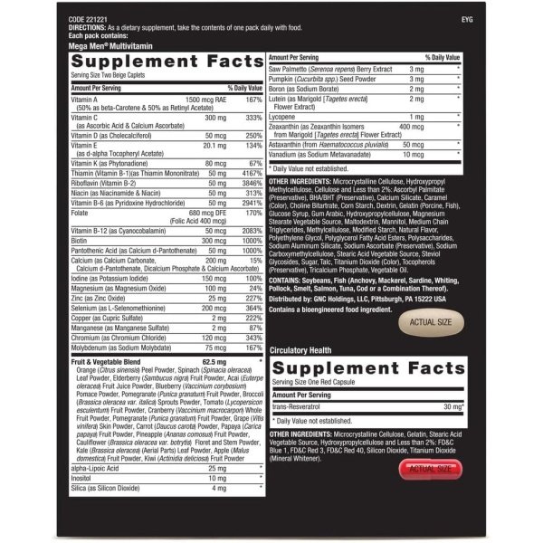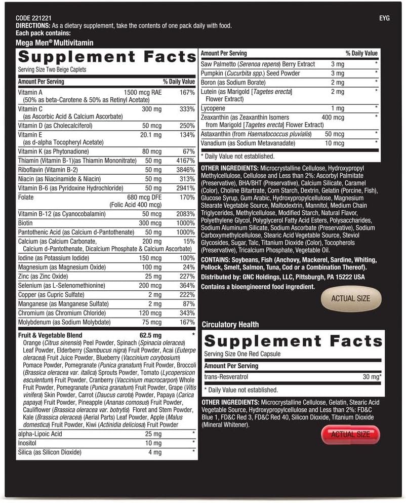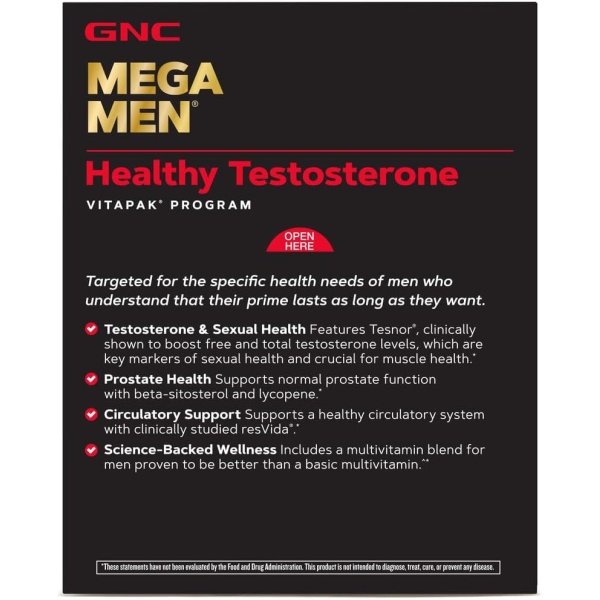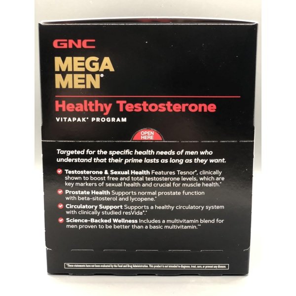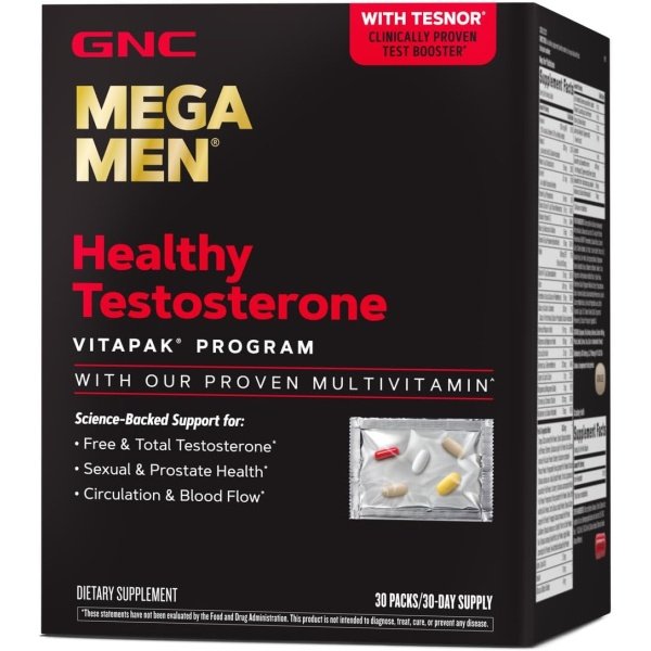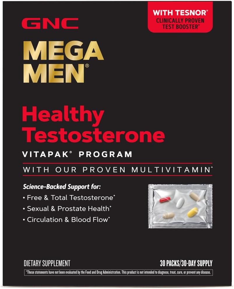 GNC’S BEST NUTRITION AND TESTOSTERONE SUPPORT: Get a clinically proven testosterone booster, a men’s multivitamin with immune support, and help for prostate and circulatory health in every GNC Mega Men Healthy Testosterone Vitapak Program. Save up to 40% compared to buying everything separately.