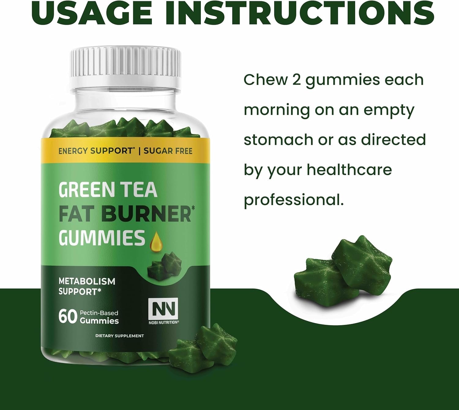 30-DAY SUPPLY: Each bottle of Green Tea Fat Burner Gummies by Nobi Nutrition contains 60 apple-flavored gummies (a 30-day supply). These gummies are pectin-based and contain no artificial flavors or colors. They are third-party tested and manufactured in a facility that adheres to GMP guidelines.