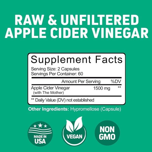CONVENIENT CAPSULE FORM: Enjoy the advantages of apple cider vinegar without the harsh taste and smell. Our capsules provide a simple, odor-free alternative to liquid vinegar, making daily intake seamless and more pleasant.