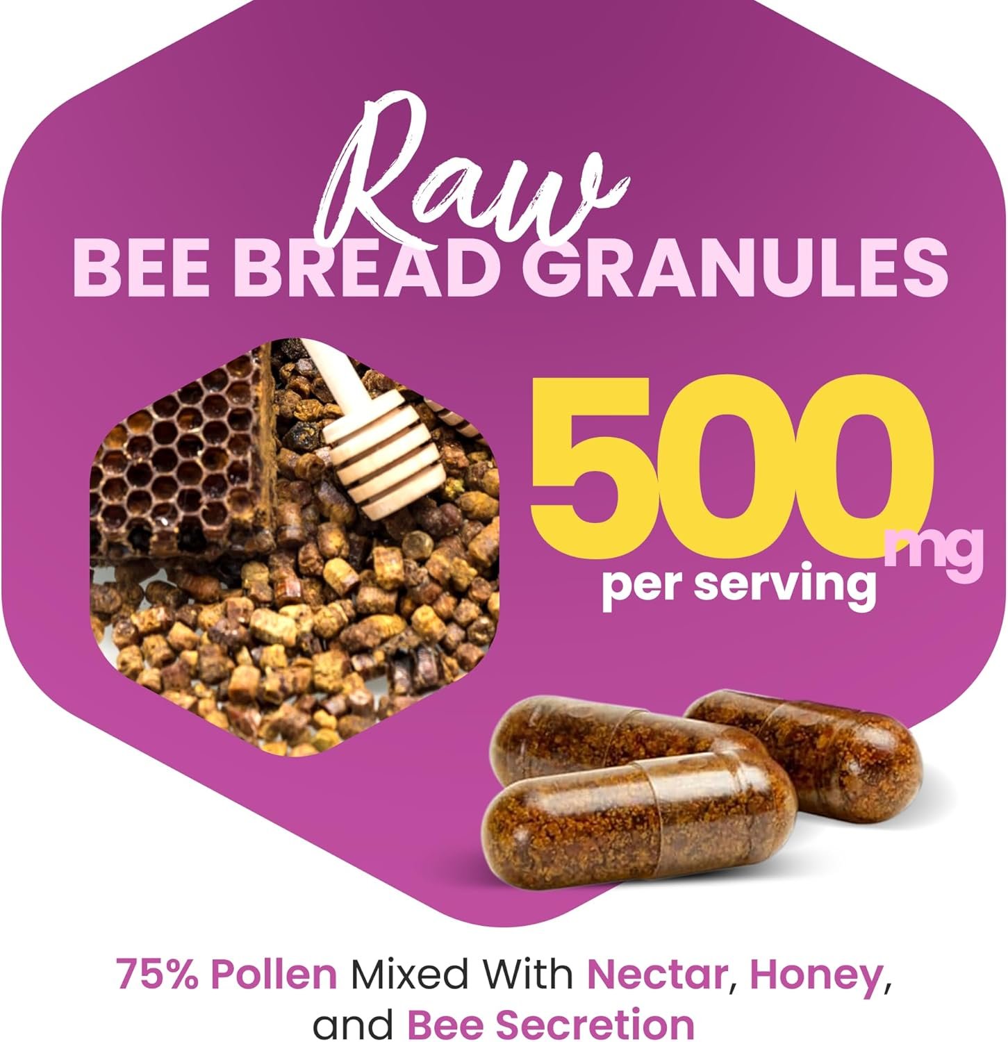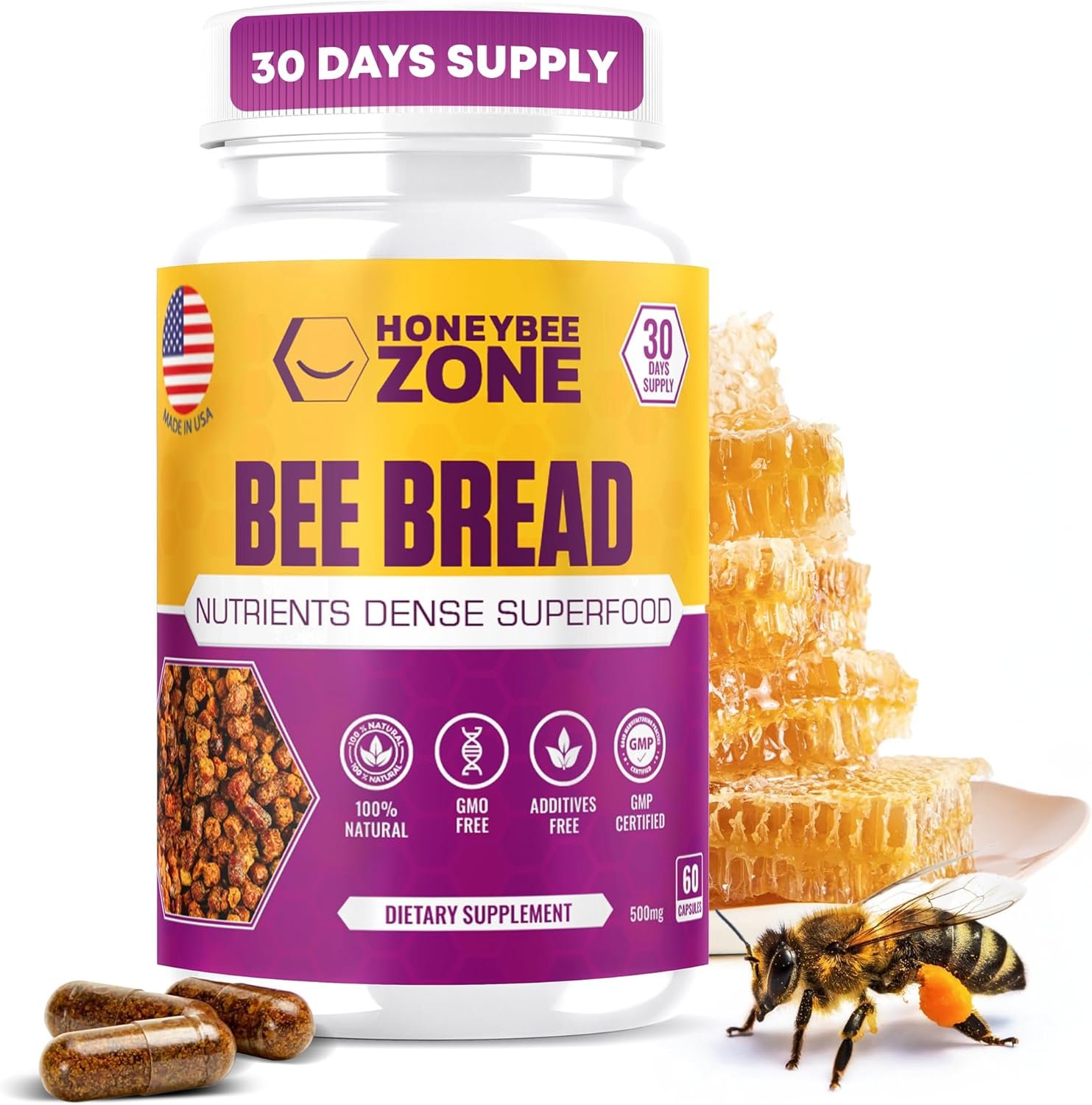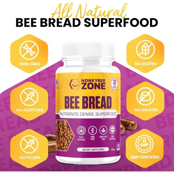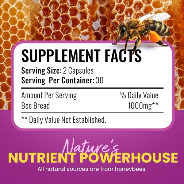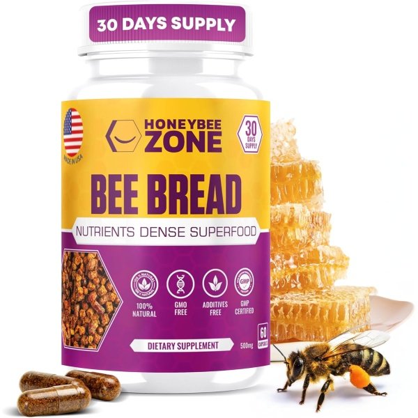 SOURCED from ALL NATURAL RAW BEEBREAD: GMP-Certified facility in the USA, Vegetarian, Non-GMO, Gluten-Free, No Fillers, Binders or Additives