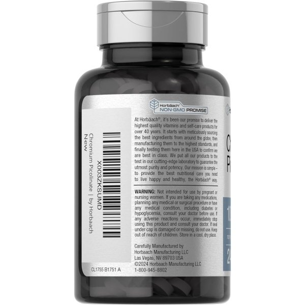 Support your routine with Horbaach Chromium Picolinate! This highly innovative formula provides 1,000 mcg of Chromium (as Chromium Picolinate) per serving in super convenient vegetarian tablets. Our gluten free and non-GMO formula contains no artificial flavor or preservatives, delivering just what you need to help meet your supplement goals.