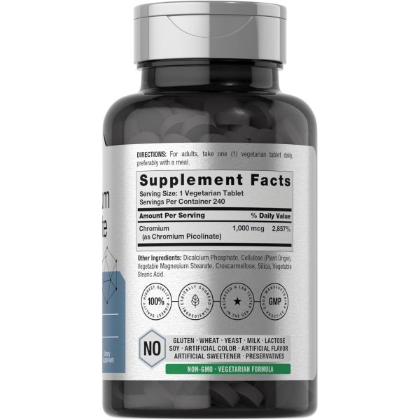 VEGETARIAN FORMULA: Each tablet delivers 1,000 mcg of Chromium Picolinate