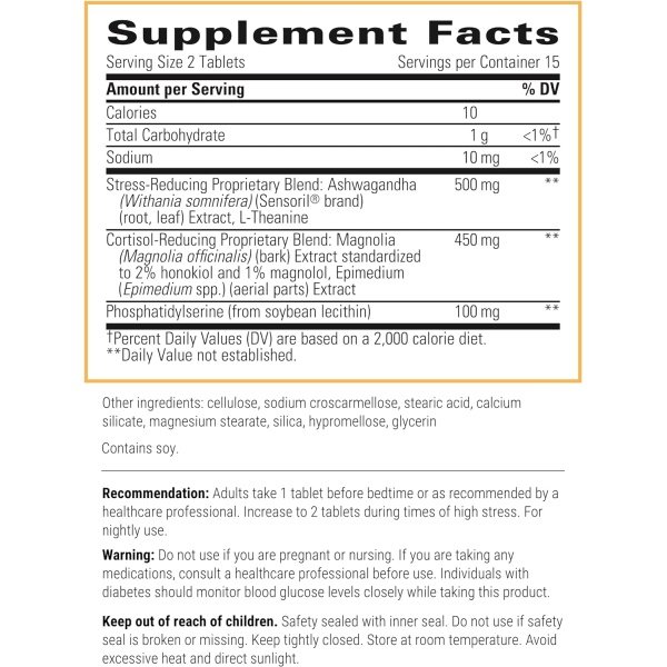 Ashwagandha & L-Theanine Supplement: This stress support supplement contains a blend of Sensoril brand ashwagandha (Withania somnifera) and L-theanine*;Sensoril is a registered trademark of Natreon, Inc.
