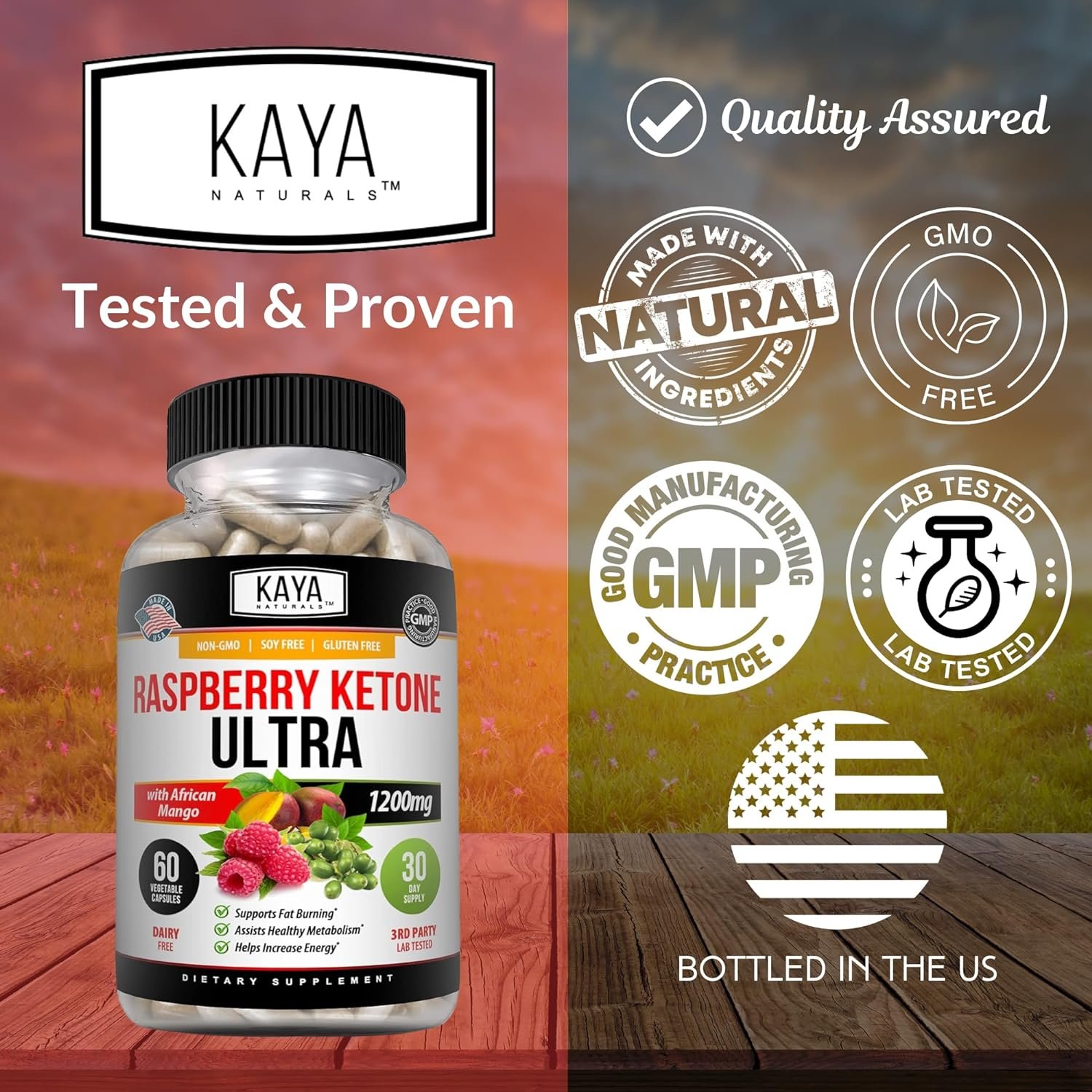 Kaya Naturals Raspberry Ketone Ultra is a dietary supplement that helps regulate appetite and supports weight management results. Enhance your ability to achieve your weight goals with raspberry ketones, African mango, and our proprietary blend of extracts. Get more pumped from your workouts without relying on extra carbs. Find the support you need for higher energy release in your muscle tissues.