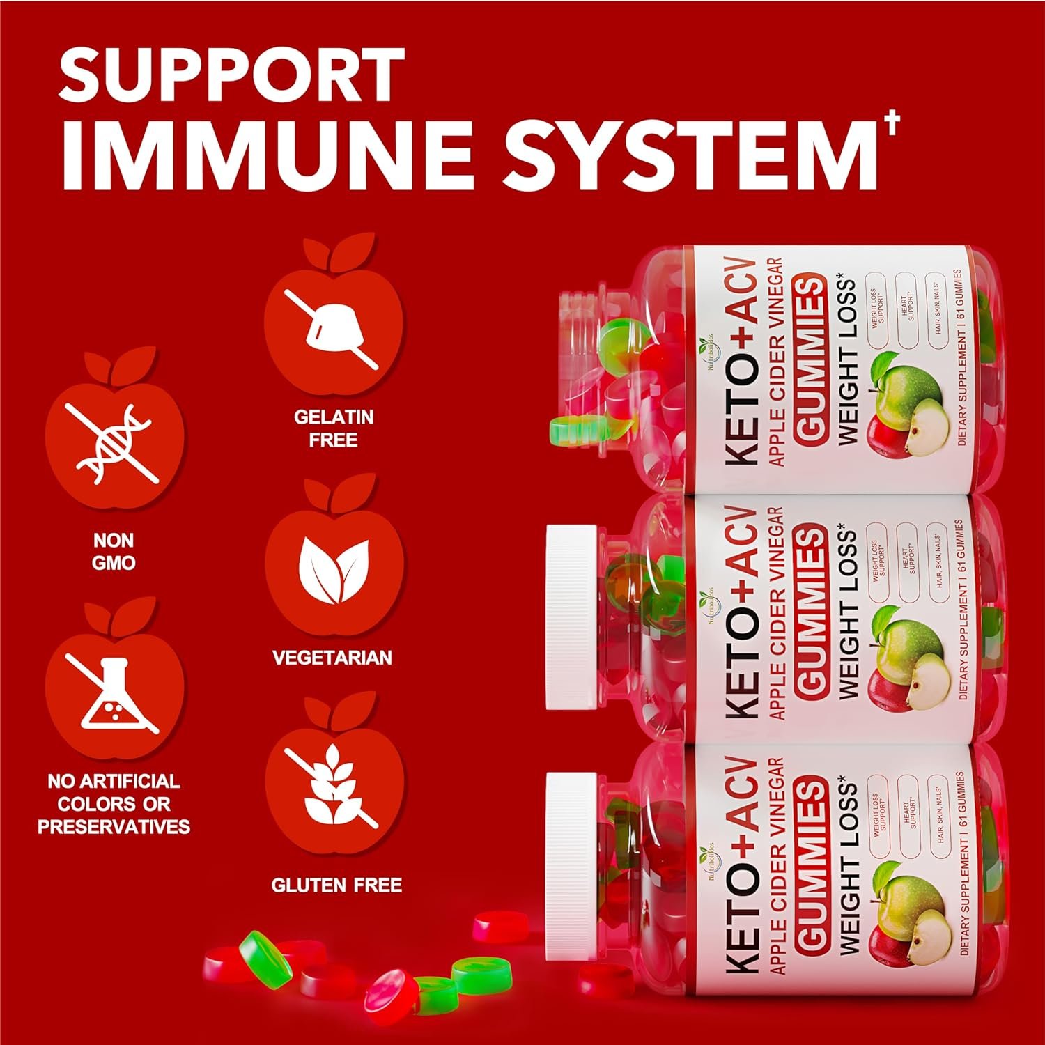 Weight Management: acv+keto gummies for weight management help deal with digestive issues & improve gut health, immunity, cellular energy production, skin quality, mental clarity so you can stay active & healthy