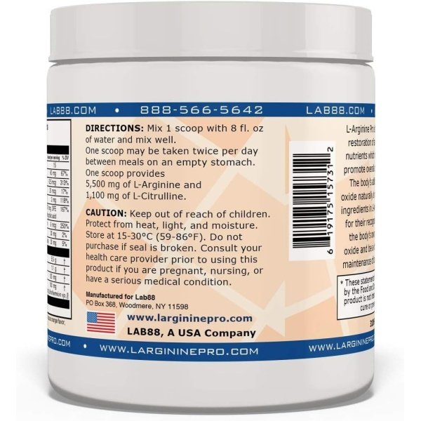 BASED ON AN AWARD WINNING NITRIC OXIDE DISCOVERY: L-arginine Pro is formulated based on a Nobel Prize winning discovery breakthrough showing how nitric oxide supports cardiovascular health. L-Arginine Pro stands out with its high-potency blend of 5,500mg of L-Arginine and 1,100mg of L-Citrulline an effective combination that enhances nitric oxide production more than those that offer only L-Arginine.