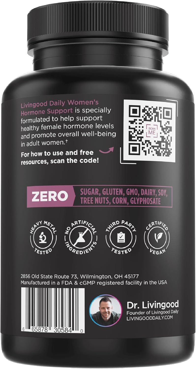 Synergistic Women’s Formula: An imbalance in hormones can results in challenges with metabolism, menstrual cycles, mood, and energy. Livingood Daily Women’s Hormone Support is a 14-in-1 formula designed to help support healthy female hormone levels and overall well-being in adult women. 120 vegetarian capsules.