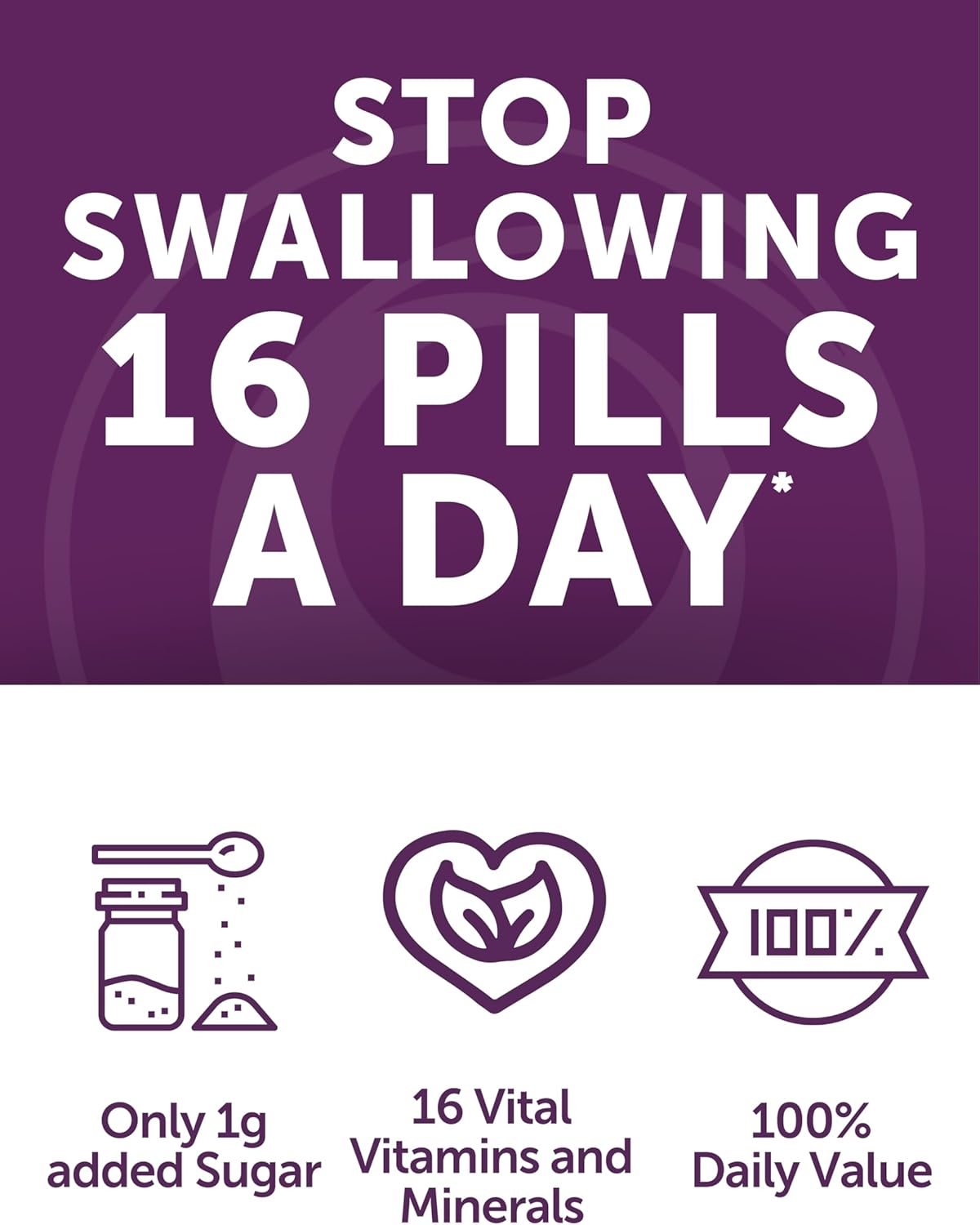 Tailored for Women 50+: Specially formulated to meet the nutritional needs of women over 50, our gummies provide 100% Daily Value of 16 essential vitamins and minerals, supporting overall health and vitality