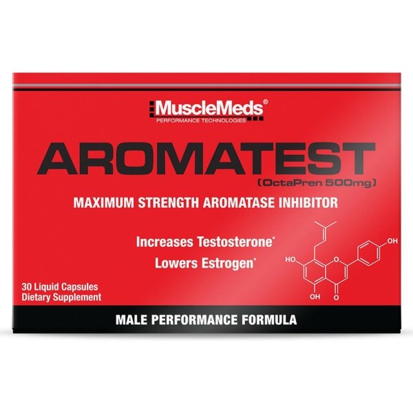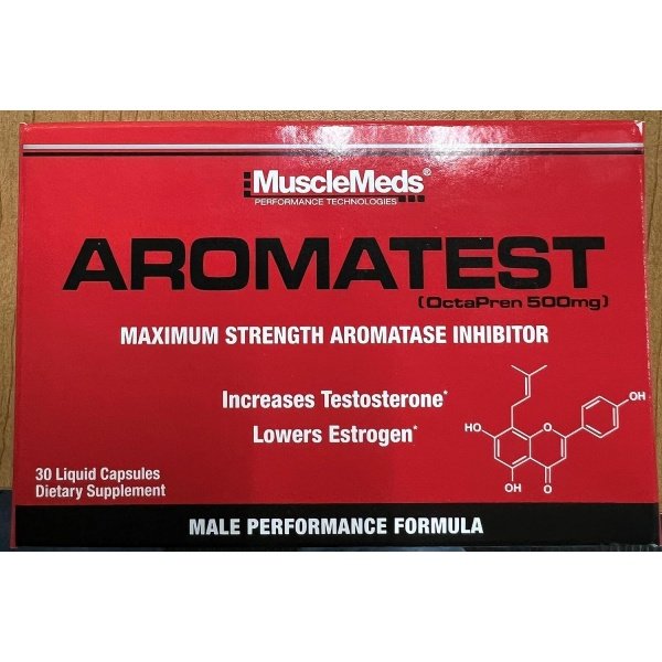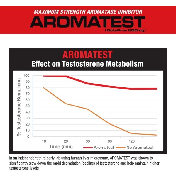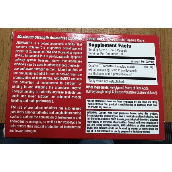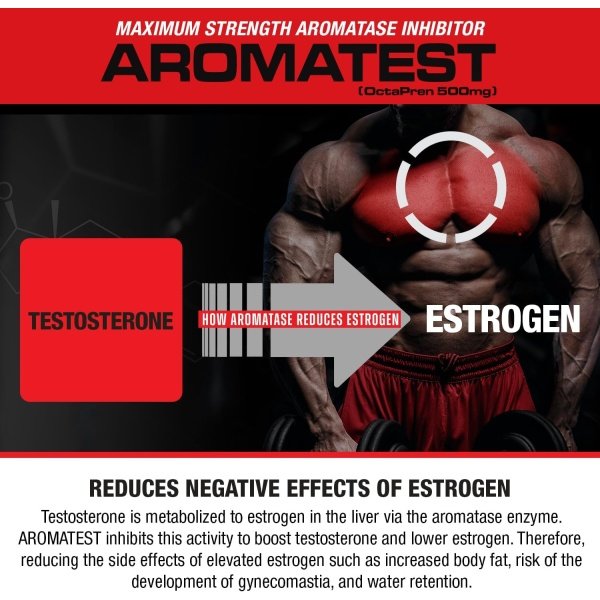 POTENT AROMATASE INHIBITOR: AROMATEST is a potent aromatase inhibitor containing 500mg OctaPren, a proprietary prenylflavonoid extract from Humulus lupulus L containing 12mg of Xathohumol (XN) and 8-prenylnaringenin (8-PN), formulated to increase testosterone and lower estrogen in men.