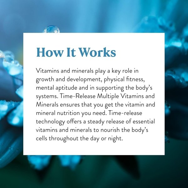 HERBS – In addition to vitamins and minerals, our formula includes health-enhancing herbs such as dandelion root, alfalfa aerial parts, kelp leaf, and rose hips. technology offers a steady release of essential vitamins and minerals to nourish the body’s cells throughout the day or night.