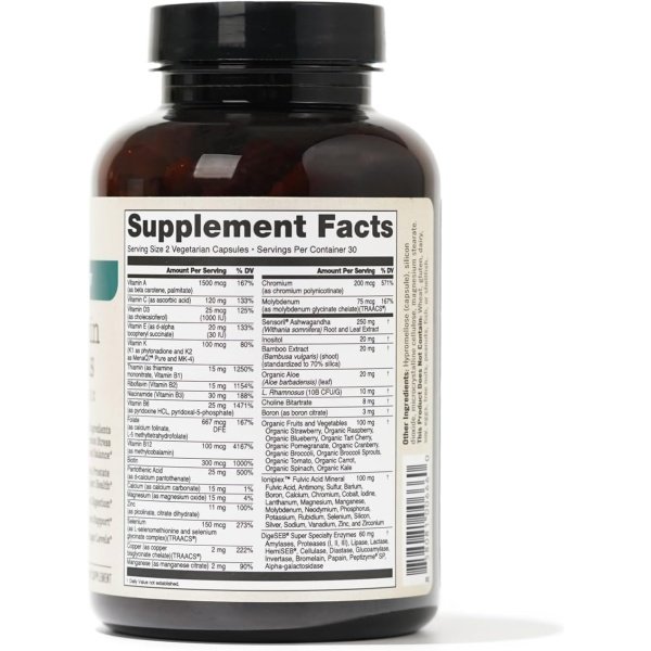 DIGESTIVE SUPPORT: This multivitamin also offers a diverse digestive enzyme complex, a whole organic foods blend, and L. acidophilus (probiotic), to help your colon digest and absorb food and nutrients more efficiently.*