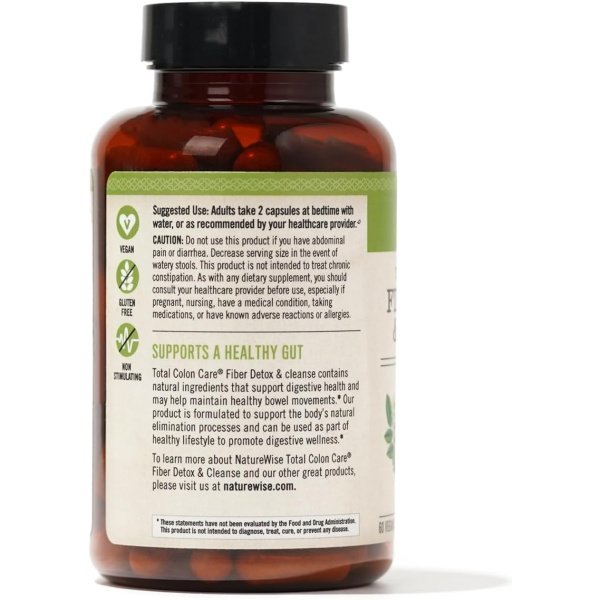 NatureWise Total Colon Care Fiber Detox & Cleanse is a holistic blend of fiber, herbs, prebiotics, and enzymes formulated to provide a gentle bowel cleanse to help reduce bloating and irregularity, boost metabolism and promote optimum colon health. Our colon- cleansing pills provide a natural cleanse with bulking fibers, like psyllium husk and fennel seed, and herbal laxatives, like senna leaf and cascara sagrada extracts, to relieve constipation without creating dependency the way over-the-counter stimulant laxatives can. Our premium cleanse pills also include licorice root, ginger root, milk thistle, goldenseal, and yellow dock to soothe irritation and aggravation in the gut and stimulate the secretion of digestive fluids for more efficient digestion, detoxification, and elimination. With prebiotics for a healthy gut environment and digestive enzymes to help optimize metabolism, our premium cleanse can even support healthy weight loss for women or men. Along with a balanced diet and regular exercise, a colon cleanser can be a great way to support your overall weight management plan.