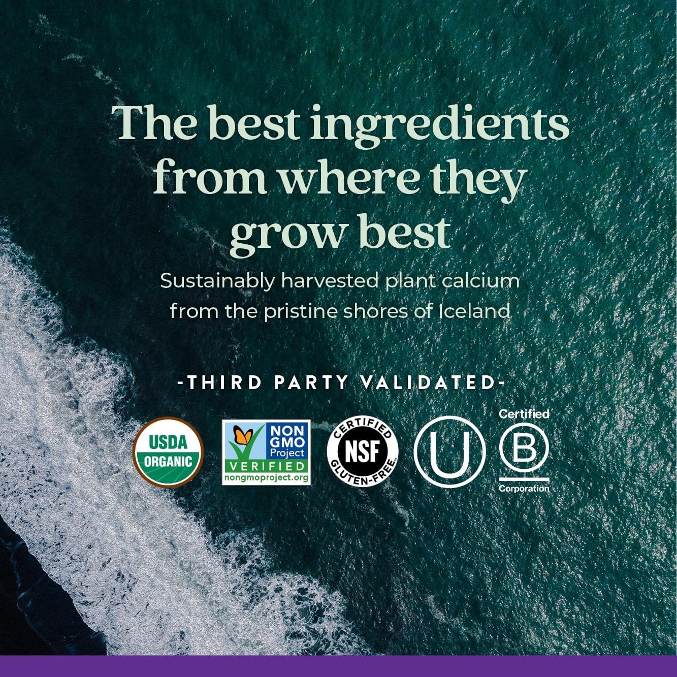 ORGANIC CALCIUM: USDA Organic plant-based calcium from sustainably harvested Red Marine Algae that’s rich in bone-nourishing calcium plus magnesium and 70+ trace minerals*