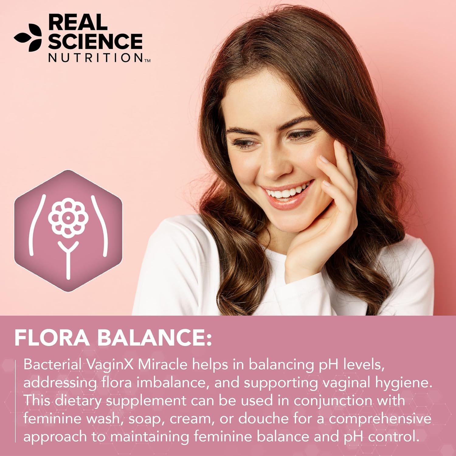FLORA BALANCE – Bacterial VaginX Miracle helps in balancing pH levels, addressing flora imbalance, and supporting vaginal hygiene. This dietary supplement can be used in conjunction with feminine wash, soap, cream, or douche for a comprehensive approach to maintaining feminine balance and pH control.
