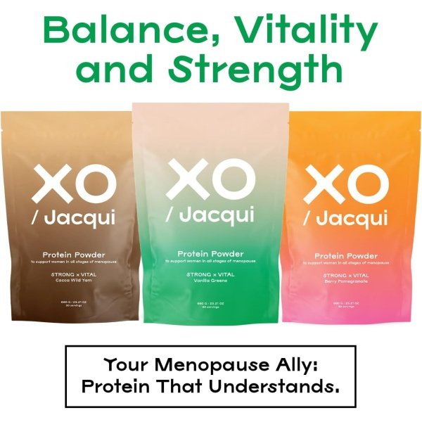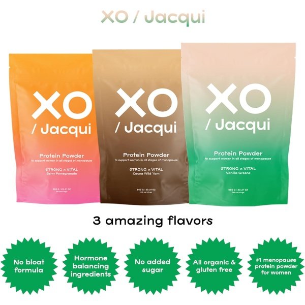 MADE FOR WOMEN BY WOMEN – XO Jacqui Menopause Support Protein Powder is made by women for women in Ojai, California. We provide a natural solution to help women stay strong, feel young, and be more energetic through every stage of menopause and beyond.