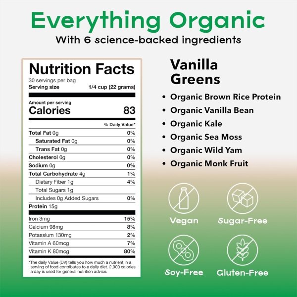 MADE FOR MENOPAUSAL WOMEN – Stay youthful and energetic during menopause with our Vanilla Greens Protein Powder. Its blend of six organic, science-backed ingredients aids in managing weight, reducing hot flashes, and supporting overall wellness.