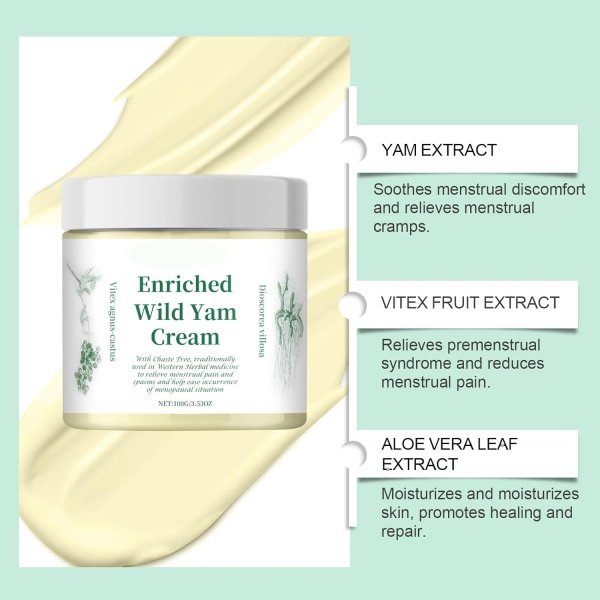 Natural Elements: Our Wild Yam Cream is made with natural, organic ingredients to ensure a pure, healthy skincare experience.