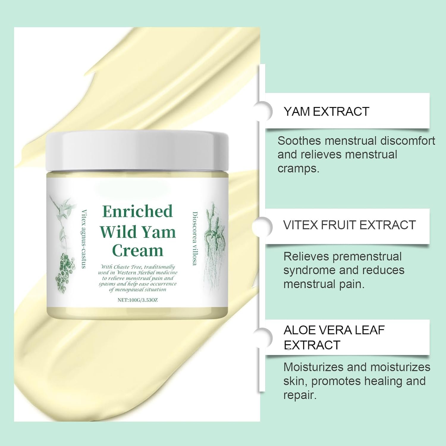 Infused with Nutritious Botanical Extracts: In addition to wild yam, our cream is blended with other beneficial botanical elements that enhance the overall effectiveness of the product.