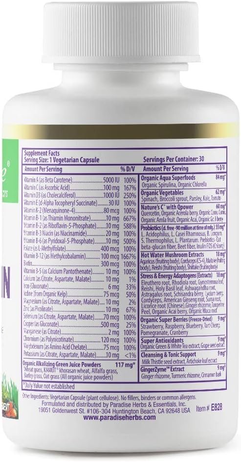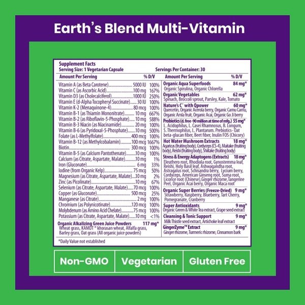Suggested Use: Take 1 capsule daily; non-GMO, gluten-free with no fillers or binders; Manufactured at our cGMP Certified production facility in the USA; “Made The Way Nature Intended” with pure & wildcrafted organic ingredients