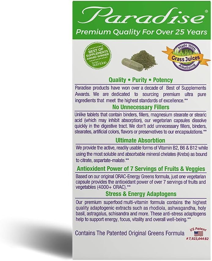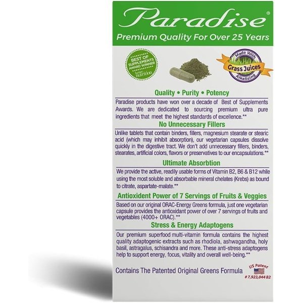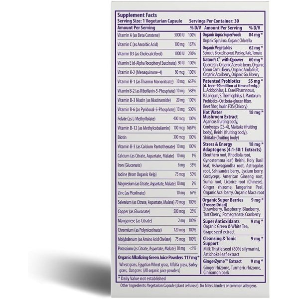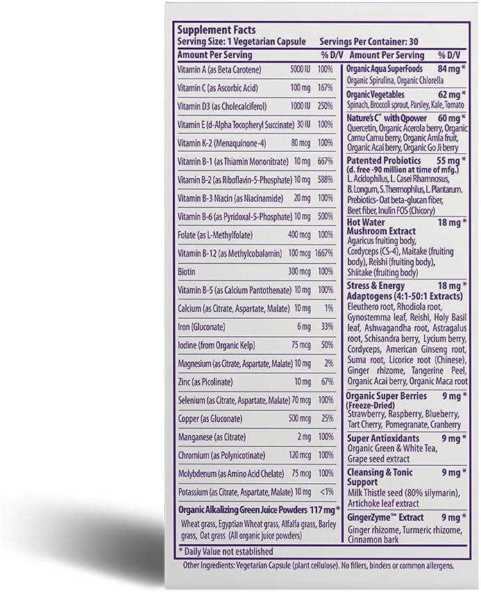Award-Winning ORAC Energy Greens: Features our patented blend of nature’s finest superfoods, including green juice powders, spirulina, holy basil & more; Contains the antioxidant power of over 7 servings of fruits & veggies in every capsule*