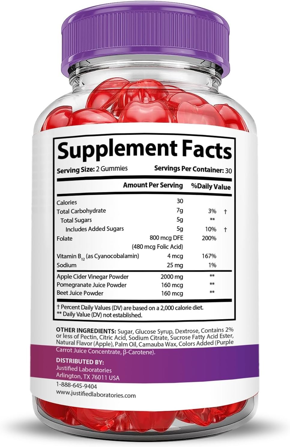 Our proprietary blend of apple cider vinegar gummies contain beet root, vitamin b12 and folate.