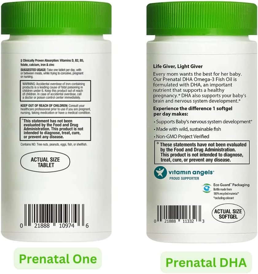 SAFE FOR BABY: Omega-3 and prenatal vitamins provide essential nutrients for proper fetal development, including brain and eye growth. Omega-3 helps with baby’s brain and nervous system, while multivitamins fill gaps in the mother’s nutrient intake and ensure baby’s healthy growth.