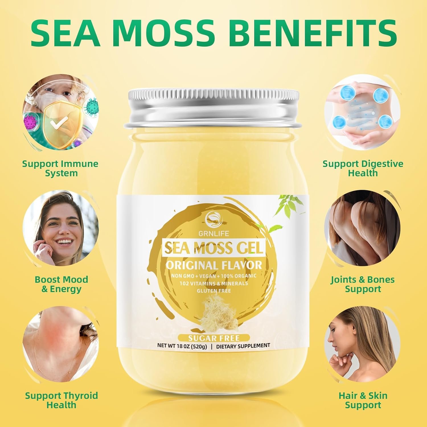 💪SEA MOSS BENEFITS: Sea moss gel organic raw advanced superfoodis naturally rich in vital minerals like iodine, magnesium, zinc, iron, and calcium. It help support immune system, increase energy and metabolic levels, helping joint and digestive health, and skin, hair and nail care.