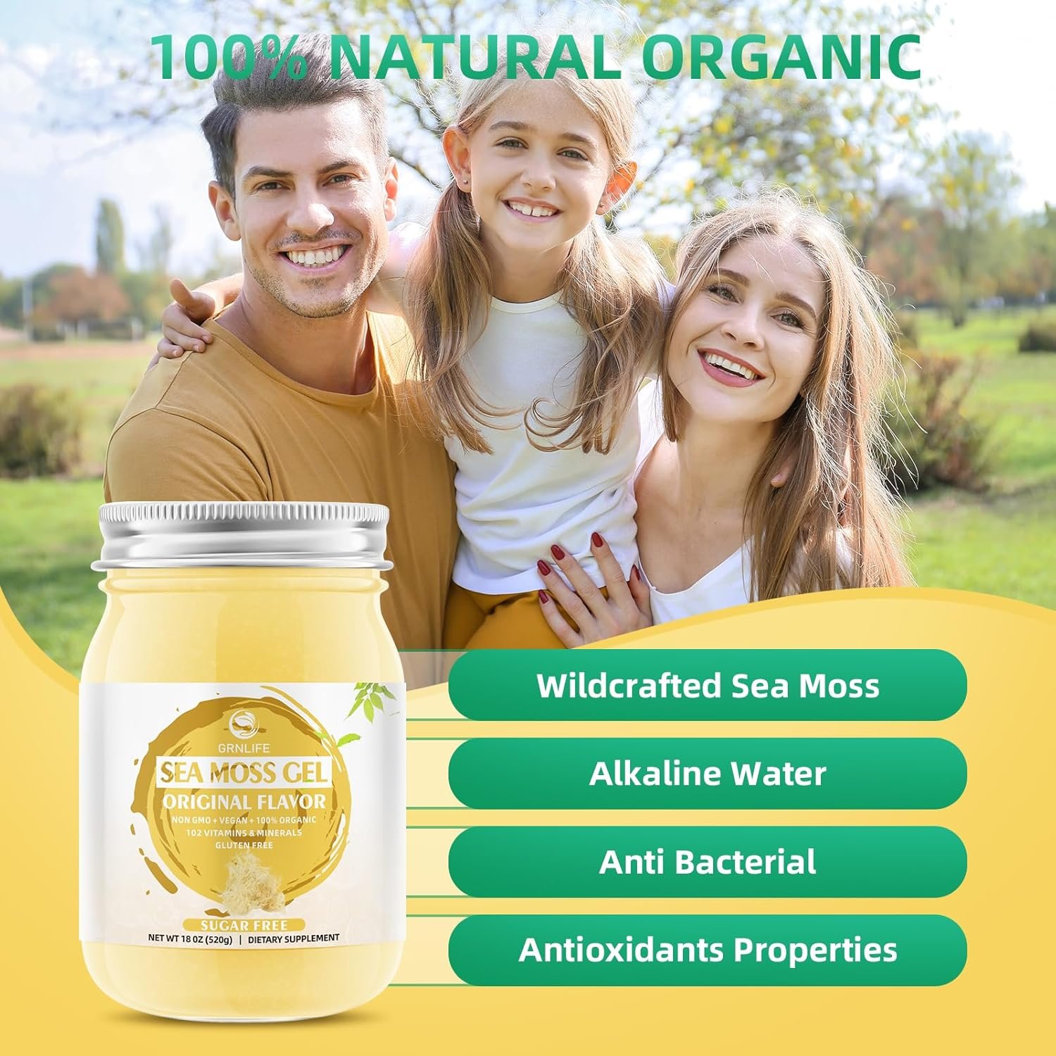 🍀SEA MOSS GEL ORGANIC RAW: Our organic sea moss gel is made from Irish 100% natural wildcrafted sea moss. This seamoss gel delivers 102 vitamins and minerals for nourishes your joints, enhancing their strength and flexibility. Experience the benefits of nature with a product free from artificial additives or preservatives.