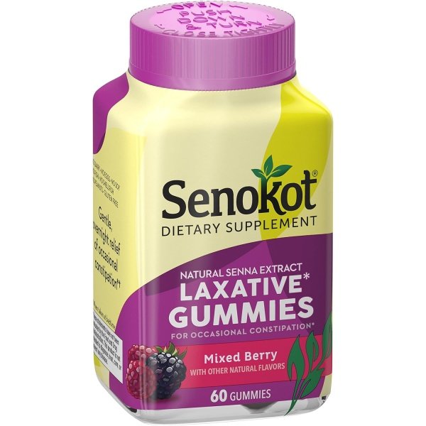 Senokot Dietary Supplement Laxative Gummies, Natural Senna Extract, Gentle, Overnight Relief from Occasional Constipation, Mixed Berry Flavor, 60 Count.