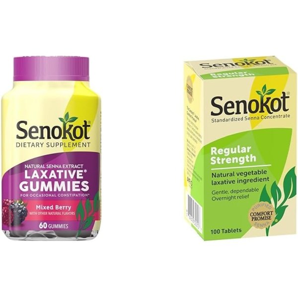 Get easy relief, the gummy way with Senokot Dietary Supplement Laxative Gummies*. When taken at bedtime, this gummy dietary supplement laxative provides gentle, overnight relief of occasional constipation*. Senokot Gummies are a dietary supplement, containing natural extract from senna plants, with a tasty mixed berry flavor. When taken as directed, generally supports a bowel movement within 6-12 hours. From the brand you trust for occasional constipation relief, Senokot chewable gummy dietary supplement laxative is available in great-tasting, mixed berry flavor. For ages 12 and up, take 4 gummies up to 2 times a day. Under adult supervision, children 6-11 can take 2 gummies up to 2 times a day. Read full labeling before use. These statements have not been evaluated by the Food and Drug Administration. This product is not intended to diagnose, treat, cure or prevent any disease.