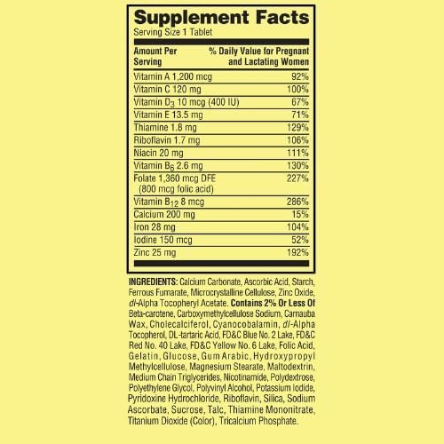 Our Spring Valley Prenatal Multivitamin/Multimineral for Pregnant and Nursing Women Dietary Supplement Tablets are a dietary supplement formulated for nutritional needs of pregnant and nursing women.* Dietary supplement supplies 14 essential nutrients to help support overall wellness before, during, and after pregnancy, and healthy fetal development.* These tablets contain no gluten, lactose, or artificial flavors. The recommended dosage is one tablet daily with food. You can rest assured that Spring Valley Prenatal Multivitamin/Multimineral for Pregnant and Nursing Women Dietary Supplement Tablets are produced with strict quality guidelines and are backed by our quality guarantee. Spring Valley understands living a healthy, balanced lifestyle is the key to being your best self. With an affordable range of products inspired by nature, Spring Valley supports your and your family’s health and holistic well-being.