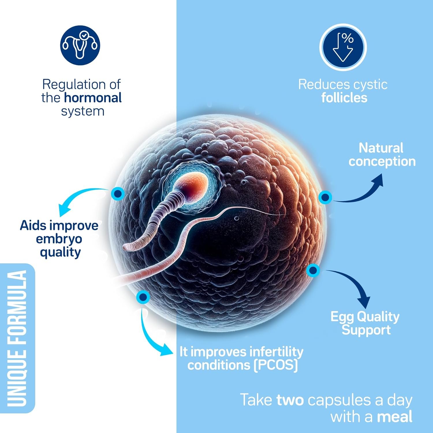 ✅ 30 – DAY SUPPLY (recommended 2 capsules per day) of our high-quality inositol, folic acid, ashwagandha, vitex supplement is formulated to promote hormonal balance, support ovarian function, and overall fertility well-being